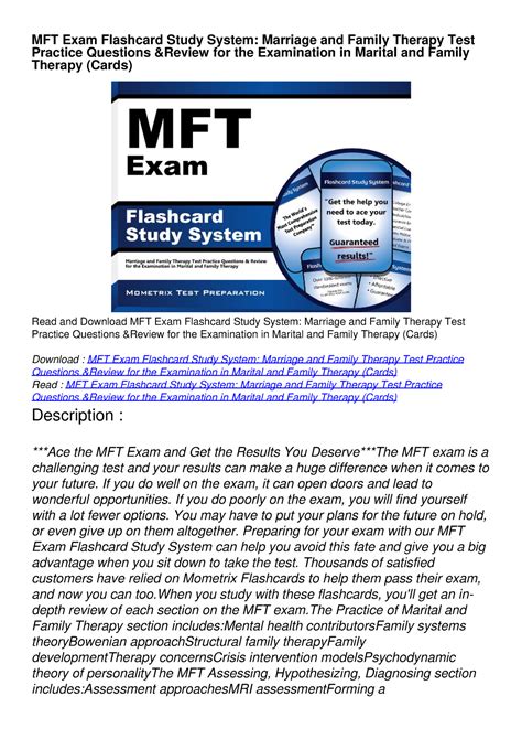 Download MFT Exam Flashcard Study System: Marriage and Family Therapy Test Practice Questions & Review for the Examination in Marital and Family Therapy (Cards) mobipocket BookBoon
